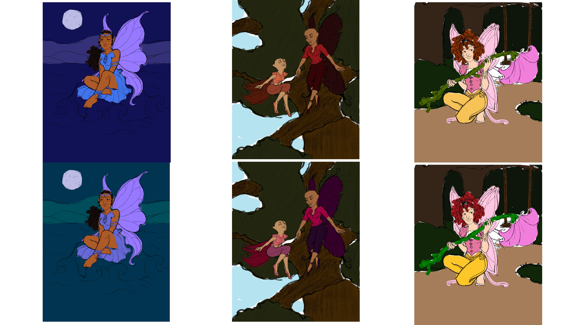Final Rendering – Detailed line work and shading were applied in Procreate to give depth and personality to each fairy.