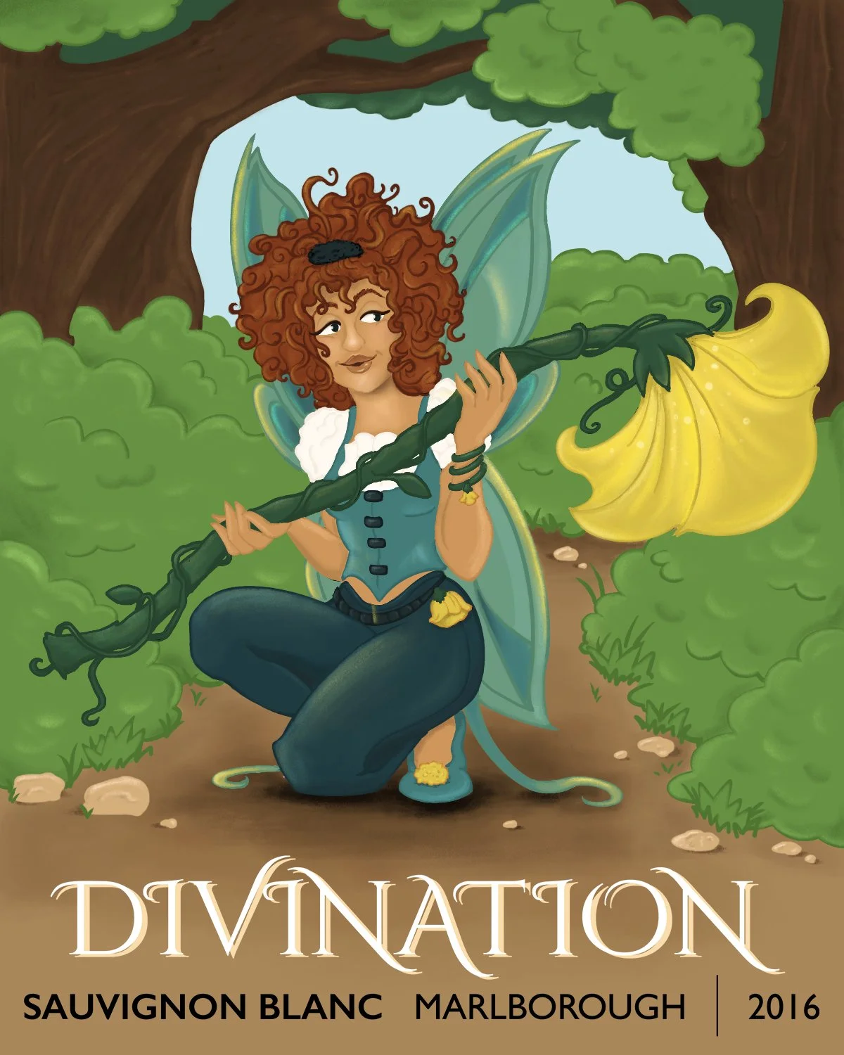 The Woodland Fairies series is a set of original character designs created to capture the unique essence and flavor profiles of Divination Wine’s three varietals: Pinot Noir, Pinot Grigio, and Sauvignon Blanc. Each fairy is a visual embodiment of the wine’s personality, translating tasting notes and aromas into a whimsical, illustrative style.